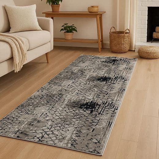 νανεώστε τον χώρο σας με αυτόν τον εντυπωσιακό διάδρομο χαλιού σε γκρι αποχρώσεις και αφηρημένο μοτίβο!