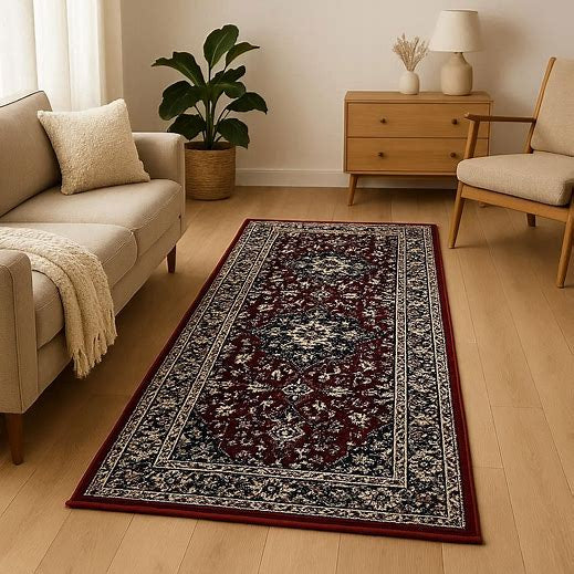 Προσθέστε ζεστασιά και αρχοντιά στον χώρο σας με αυτόν τον εντυπωσιακό κλασικό διάδρομο σε βαθύ μπορντό χρώμα. Το περίτεχνο σχέδιό του με λεπτομέρειες σε εκρού και γκρι αποχρώσεις χαρίζει μια αίσθηση πολυτέλειας, ενώ ταιριάζει αρμονικά σε κάθε είδους διακόσμηση — από παραδοσιακή έως πιο σύγχρονη.