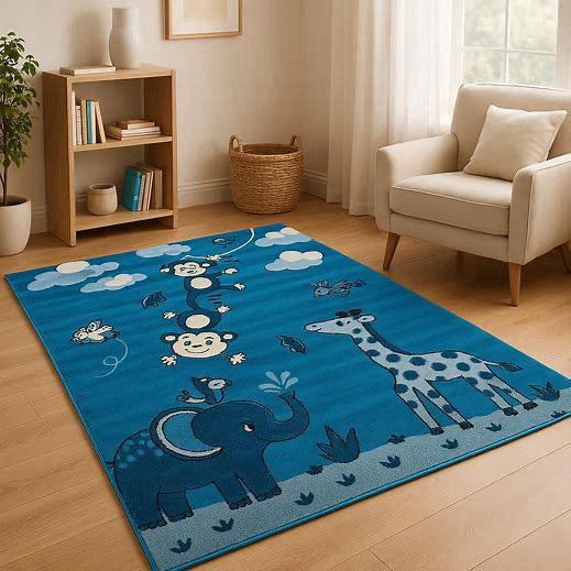 Παιδικό Χαλί 160x220 μέτρα μπλέ με ζώα