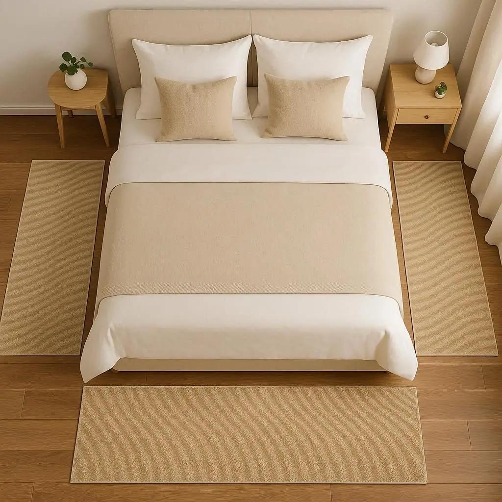 Πρόκειται για ένα ανάγλυφο Σετ κρεβατοκάμαρας σε ζεστή μπέζ απόχρωση, με υφή που συνδυάζει κοντό και πιο ψηλό πέλος δημιουργώντας ένα κομψό, τρισδιάστατο εφέ.